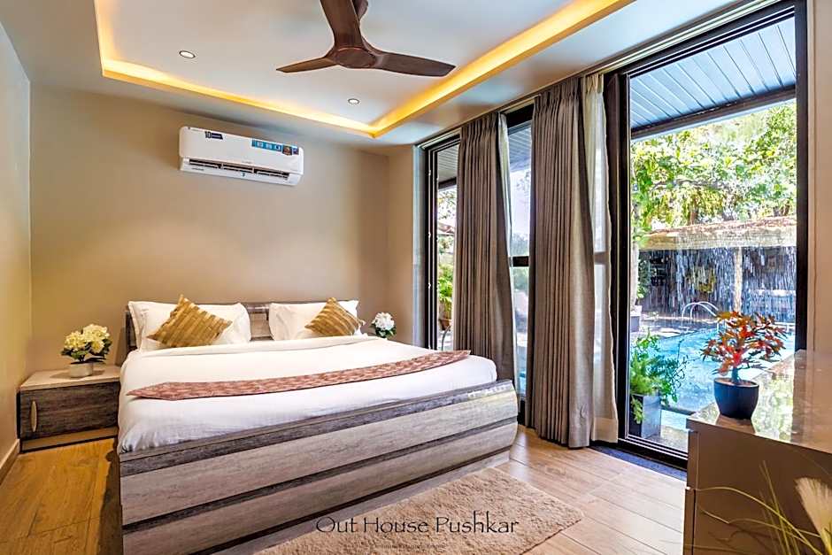 Nestled just 1マイル from the vibrant heart of Pushkar, The Out House Pushkar offers an idyllic escape with a splash of luxury. Perfect for both relaxation and adventure, this 5-star hotel features a stunning outdoor swimming pool and a private pool, where you can unwind under the Indian sun after exploring the city. With a beautifully designed garden, terrace, and garden view options, your stay is sure to be both serene and memorable.